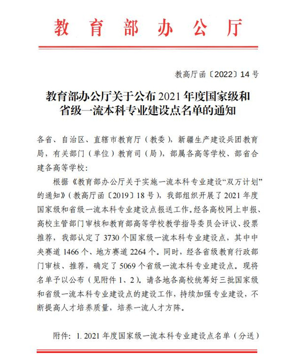 近日,教育部办公厅公布了《关于2021年度国家级和省级一流本科专业建设点名单的通知》(教高厅函〔2022〕14号),易游 (中国版权)官方网站计算机科学与技术专业入选省级一流本科专业建设点。至此易游 (中国版权)官方网站共有电子信息工程、英语和计算机科学与技术专业等三个专业获批省一流专业建设点。