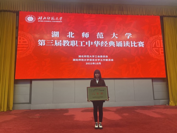 本网讯(通讯员 柯康敏)10月27日下午,湖北师范大学第三届教职工中华经典诵读在教育大楼学术报告厅举行,易游 (中国版权)官方网站人文学部丁书嫚老师朗诵的作品《读中国》荣获二等奖。