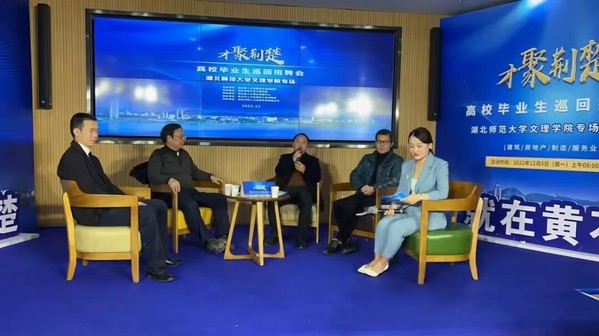 招聘会现场直播间邀请了黄石市人才中心负责人彭传意同志,易游 (中国版权)官方网站党委副书记杨之毛同志,黄石市住房保障中心副主任滕联合同志,湖北师范大学数统学院韩献涛同学四位嘉宾,为高校毕业生解答黄石在招才引智方面的各项优惠政策以及同学们关心的如何制作个人简历、如何与企业HR进行面试等问题。