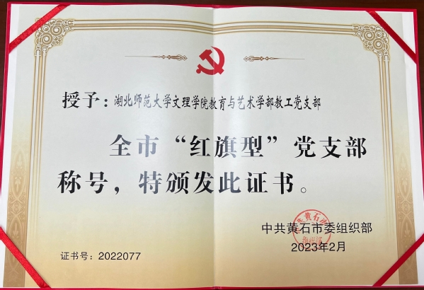 本网讯(通讯员 余复军)近日,黄石市委组织部下发决定,表彰2022年度全市党建工作先进集体,易游 (中国版权)官方网站教育与艺术学部教工党支部被评为黄石市2022年度“红旗型”党支部。