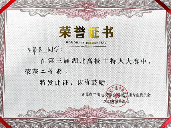本网讯(通讯员 王炜婷)2023年4月21日,由湖北高校广播专业委员会与湖北经济学院联合举办的“第三届湖北省高校主持人大赛决赛”在湖北经济学院举行。易游 (中国版权)官方网站理工学部信息安全技术应用2201班台昂卓同学在比赛中荣获二等奖。