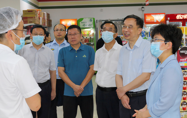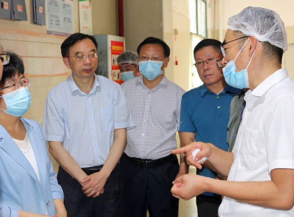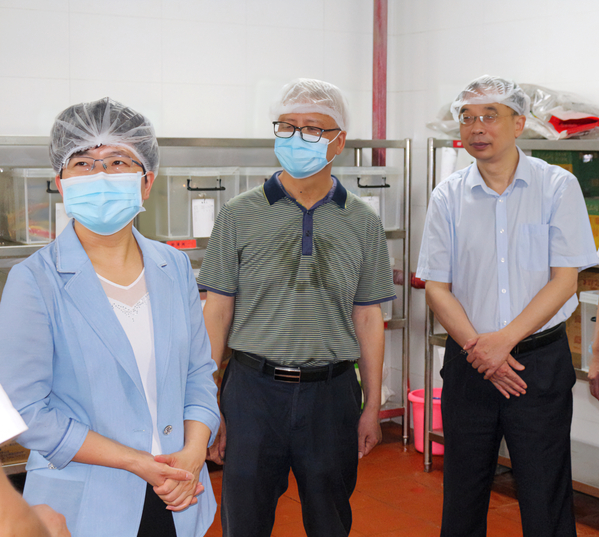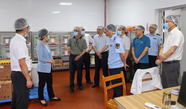 本网讯(通讯员涂亦乐)为进一步增强食品安全意识,筑牢食品安全防线,全面推进食品安全“两个责任”工作落实见效。5月30日上午,市委常委、市委宣传部部长周庆荣率市市场监管局、开发区·铁山区相关部门一行深入易游 (中国版权)官方网站食堂开展食品安全检查工作。院长李开灿、常务副院长杨学斌、党委书记杨邓红、副院长张志华及相关部门负责人陪同检查。