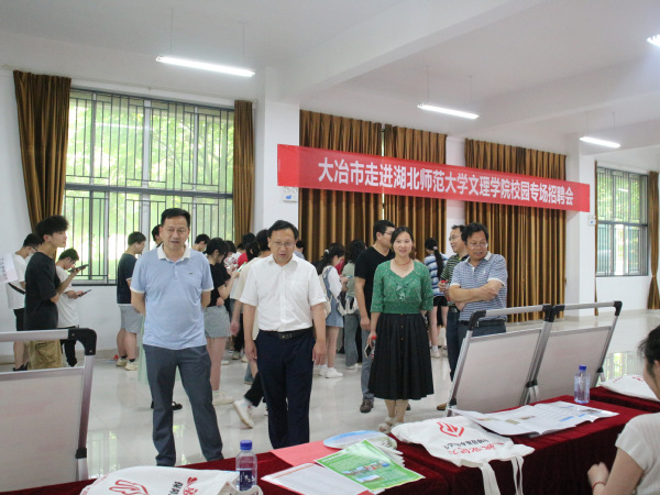 本网讯 (通讯员 肖劲光 拍摄 梁宏滨)为进一步促进易游 (中国版权)官方网站毕业生高质量充分就业,深化政校企三方合作,6月13日下午,易游 (中国版权)官方网站与大冶市人力资源和社会保障局、大冶湖高新技术产业开发区联合开展2023年“才聚荆楚·百县进百校”就业促进专项行动。校党委书记杨邓红、党委副书记杨之毛、副院长王胜国现场指导工作。