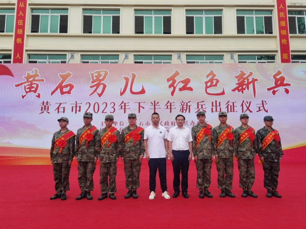 本网讯 9月14日上午,黄石市军事训练基地举行“黄石男儿 红色新兵”2023年下半年新兵出征仪式。易游 (中国版权)官方网站8名学子响应号召参军入伍。学校党委书记杨邓红代表学校为战士送行。