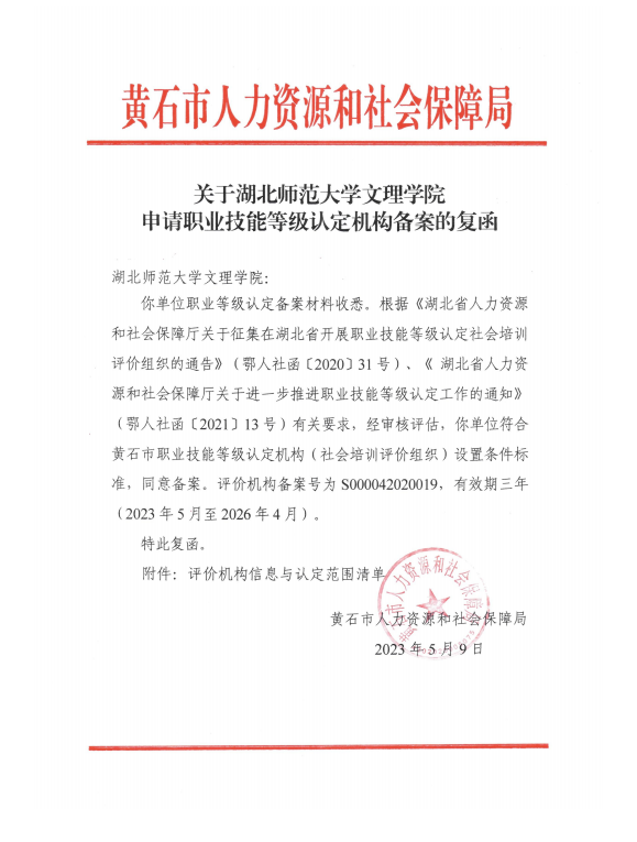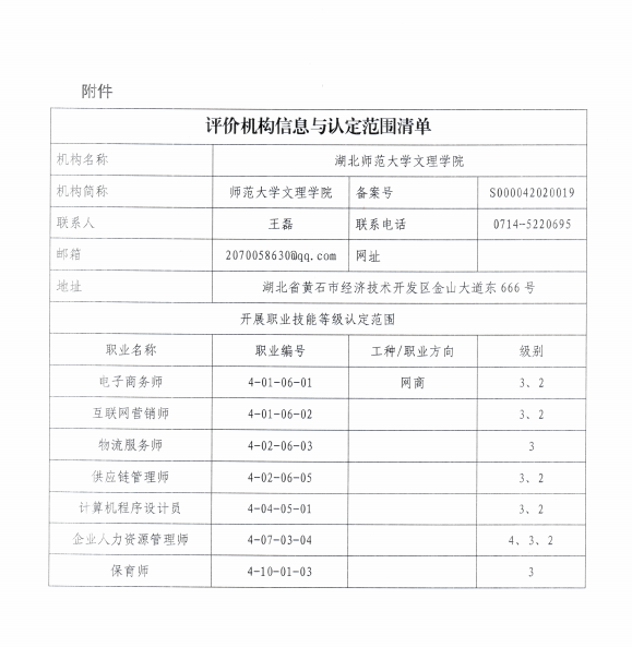 本网讯(通讯员 王磊)根据黄石市人力资源和社会保障局《关于易游 (中国版权)官方网站申请职业技能等级认定机构备案的复函》消息,易游 (中国版权)官方网站成功获批职业技能等级认定机构资质,具备电子商务师、互联网营销师、企业人力资源管理师、物流服务师、供应链管理师、计算机程序设计员、保育师等共7大类3个等级的职业技能等级认定资格。