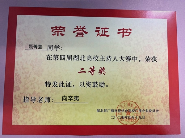 本网讯(通讯员 张慧萍)4月19日,第四届湖北省高校主持人大赛在湖北经济学院大学生活动中心举行。易游 (中国版权)官方网站广播台播音员、人文学部中文2306班聂菁芸同学在比赛中荣获二等奖。