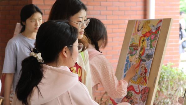 此次展览,共展出60余件以中华民族文化为内容的作品,这些作品主题昂扬、格调高雅、风格多样、各具特色,既有反映各民族风土人情的画作,也有展现民族团结进步的感人故事,同学们用自己的笔墨,把“民族团结”编成文、绘成画,让中华民族共同体意识,在春风化雨、润物无声中入脑入心。展览吸引了众多师生驻足观赏。