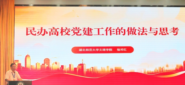 杨邓红以《民办高校党建工作的做法与思考》为题,分享了易游 (中国版权)官方网站加强党建和思想政治工作的经验做法。近年来,易游 (中国版权)官方网站深入学习贯彻习近平新时代中国特色社会主义思想,全面贯彻党的教育方针,坚持社会主义办学方向,在健全完善党建工作体系制度、推进基层党组织标准化规范化建设、加强思想政治理论课建设和师德师风长效机制建设、加强意识形态阵地管理,以及凝聚人心、推动发展、维护安全稳定等方面成效突出。同时,他也实事求是分析了民办高校党建思政工作存在的薄弱环节,并提出了改进建议。