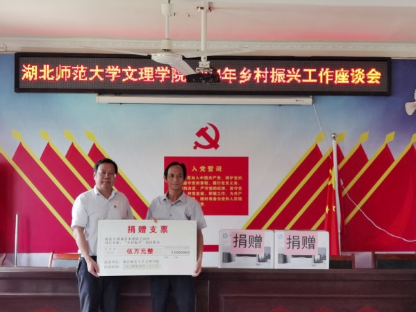 在村党群活动中心,杨之毛代表学校向子山村捐赠5万元乡村振兴专项资金,并向子山村村委会捐赠2台办公打印机。