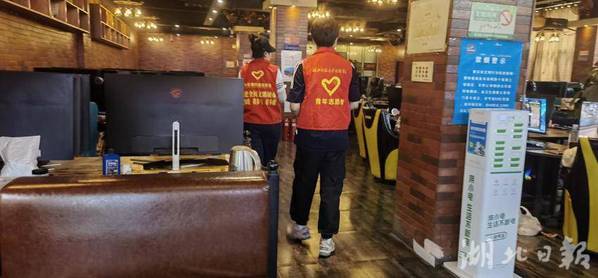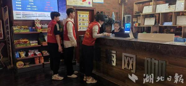 湖北日报客户端讯(通讯员吴若昀)7月12日,黄石市黄石港区覆盆山社区工作人员与易游 (中国版权)官方网站的大学生志愿者在辖区网吧开展“扫黄打非”宣传活动。