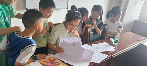 在高场村,来自易游 (中国版权)官方网站的大学生志愿者罗艺正在为十多名儿童开展美术、手工剪纸、防溺水教育、课业辅导等多元化课程,让儿童在愉快的氛围中度过一个充实、温馨的暑假。