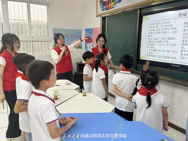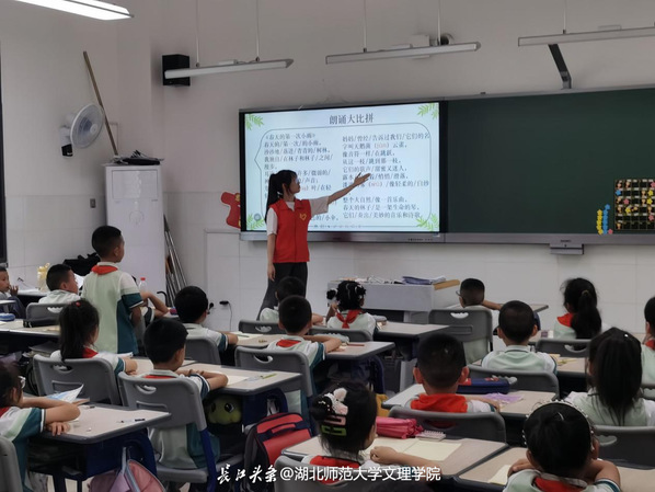堆子场小学和幼儿园由于地处贫困山村地区,普通话普及率较低,因此志愿者更加注重普通话的推广和普及。在课堂上,他们以引导和互动为主,借动画和益智类游戏来加深小朋友们对讲好普通话的认识和理解。