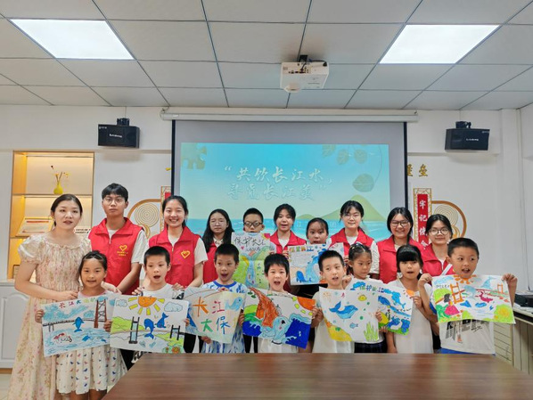 活动现场,宣讲团通过PPT展示和讲解,向居民们介绍了长江的生态环境现状及面临的挑战。他们用生动的数据和案例,让居民们深刻认识到长江生态环境保护的重要性和紧迫性。讲解结束后,宣讲团的志愿者们带领着社区居民、小朋友共同完成了以“共饮长江水,寻觅长江美”为主题的手抄报。
