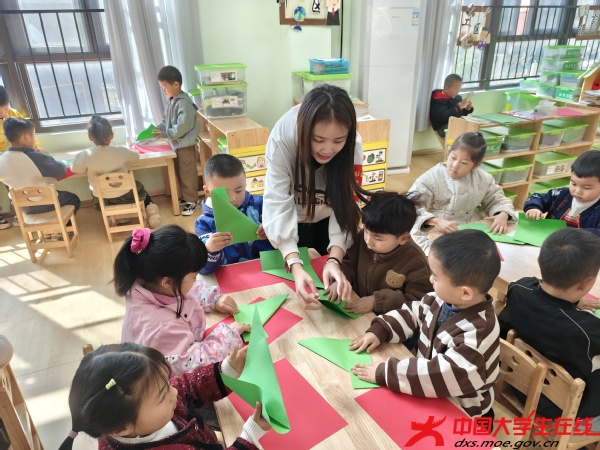 随后,志愿者将雷锋精神的传承融入手工课堂。通过播放动画短片《雷锋的故事》,以孩子们喜闻乐见的形式展现雷锋助人为乐、爱岗敬业的感人事迹。在手工制作环节,志愿者一边讲解雷锋帽的象征意义——“红色的五角星代表着全心全意为人民服务的精神”,一边手把手指导孩子们用彩纸折叠雷锋帽。活动现场,孩子们兴致勃勃地完成了30余顶独具特色的手工作品。