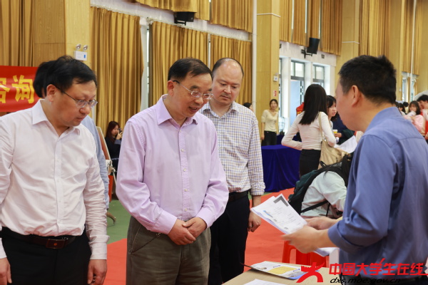 全体校领导到场检查指导工作。他们与用人单位和毕业生亲切交谈,询问招聘需求与求职进展。校长李开灿表示,学校将继续举全校之力,为毕业生搭建更多就业平台、提供更精准的就业服务。