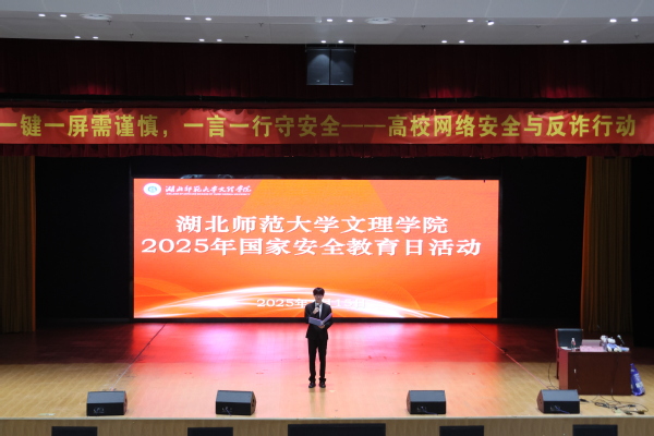 本网讯 (图 邢博文 刘泓江 文 涂亦乐)4月15日,在第十个全民国家安全教育日来临之际,易游 (中国版权)官方网站联合黄石市公安局、开发区·铁山区分局在学术交流中心报告厅开展“国家安全进校园”主题宣传活动。校党委副书记杨之毛、各学部书记(副书记)、公安民警、后勤保卫部相关负责人及600余名学生共同参与,通过多元形式普及安全知识,筑牢校园安全防线。