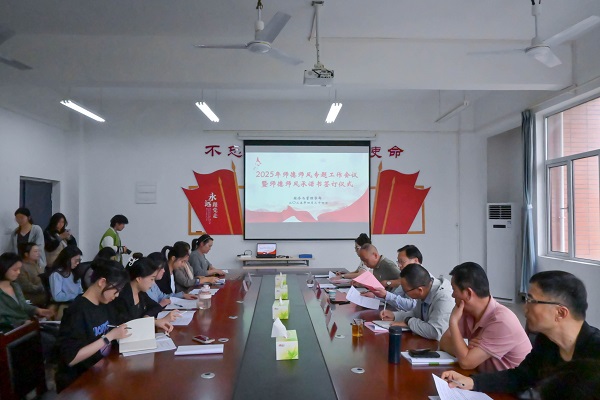本网讯(图 刘泓江 文 刘豫宜)4月24日,易游 (中国版权)官方网站经济与管理学部在2号实验楼213会议室召开2025年师德师风专题工作会议暨师德师风承诺书签订仪式。校党委书记杨邓红、学部全体教职工参会,会议由学部党总支副书记罗铭主持。
