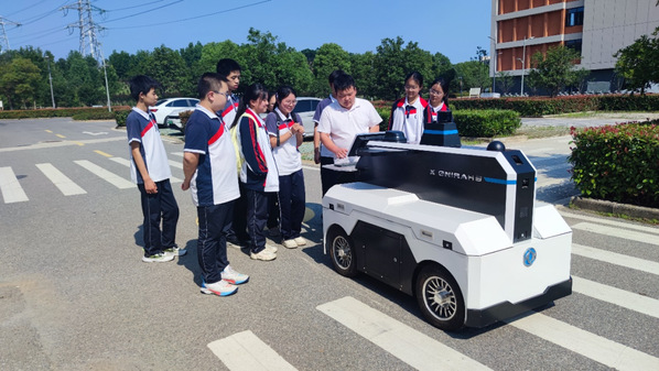 智能网联汽车实验室瞬间点燃了同学们的好奇心。在这里,大家见到了搭载着各种传感器(如摄像头、雷达、激光雷达等)的智能汽车实验模型,直观感受了汽车的“眼睛”和“大脑”。学院专家用生动的语言和精彩的现场演示,揭秘了智能汽车如何通过环境感知、高精度定位、路径规划与决策控制等核心技术,实现自动避障、循迹行驶甚至模拟自动泊车。部分幸运的同学更是在专业人员的监护下,在模拟环境或封闭场地进行了简易智能小车的操控体验,亲眼看到自己的指令如何被车辆“理解”并执行,对人工智能在交通领域的应用有了切身体会。