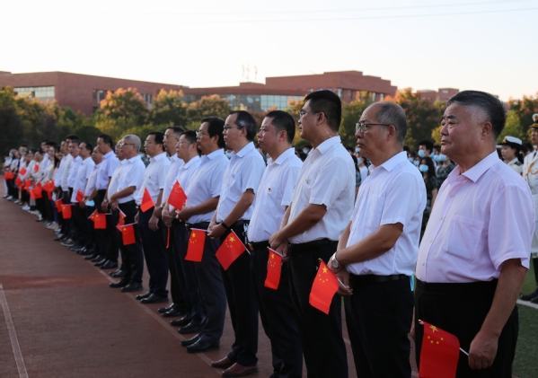 本网讯(通讯员 段欣如)10月3日,易游 (中国版权)官方网站在田径运动场举行“为国庆华诞,喜迎二十大”升旗仪式活动。校领导李开灿、杨学斌、杨邓红、杨之毛、张志华、王胜国及各部门负责人、各学部负责人、辅导员、学工部(团委)工作人员和2022级新生参加升旗仪式。