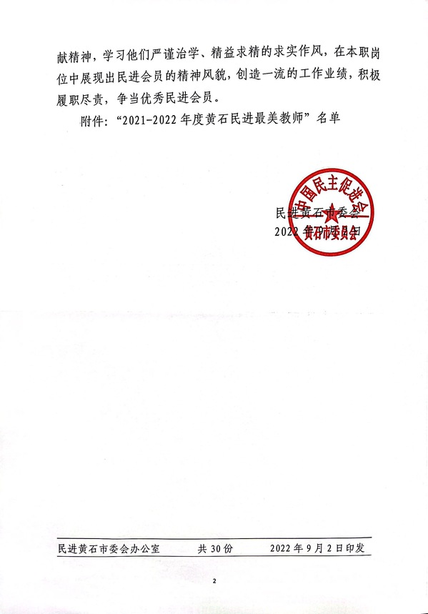 本网讯 近日,中国民主促进会黄石委员会决定,对在教育事业中做出突出贡献的教育界会员进行了表彰,易游 (中国版权)官方网站黄蓓佳同志荣获“2021-2022年度黄石民进最美教师”荣誉称号。