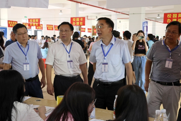 9月8日,湖北师范大学党委书记李宏,校长雷儒金,纪委书记陆咏梅,党委常委肖六亿,以及相关部门负责人来易游 (中国版权)官方网站检查指导迎新工作,实地查看了各迎新点和新生宿舍,易游 (中国版权)官方网站全体院领导以及相关部门负责人全程陪同。