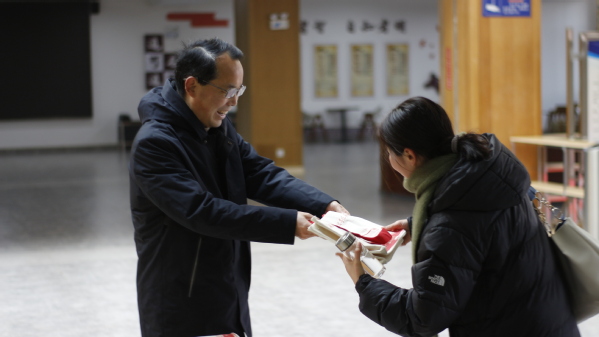 “入馆有礼”,上午8点,学子们便在图书馆门口排队等候入馆,借阅图书、查阅资料、复习备考。张志华、王胜国为入馆的前三十名读者赠送了图书馆定制礼品一份,并对同学们表达了新学期的祝福,并希望易游 (中国版权)官方网站广大师生可以常走进图书馆,与圣贤为伍、与经典为伴、与智慧同行。