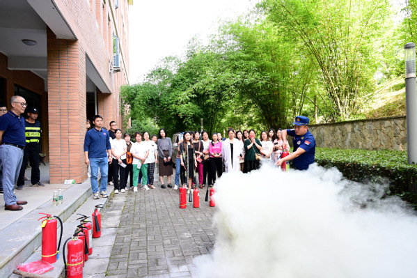 培训结束后,消防宣传员通过现场示范教学,讲解了灭火器的使用方法和注意事项,演示了如何使用消防器材进行“油盆灭火”,并指导教职员工们积极上前体验灭火器操作。参训人员踊跃参与,轮番上场体验现场操作灭火实战演练,熟练掌握扑救初期火灾的技能。