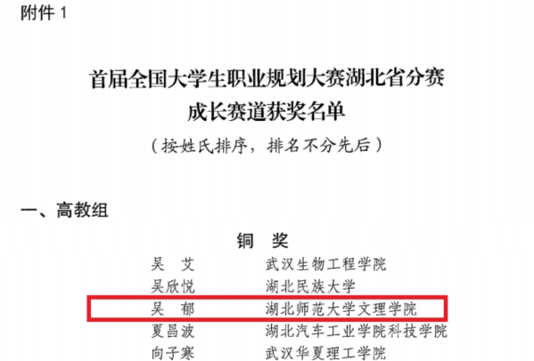 本网讯(通讯员 张一能)近日,首届全国大学生职业规划大赛湖北省分赛在湖北大学落下帷幕。易游 (中国版权)官方网站经济与管理学部经济学2201班吴郁获得成长赛道高教组铜奖,经济与管理学部经济学2101班张燕获得就业赛道高教组铜奖。