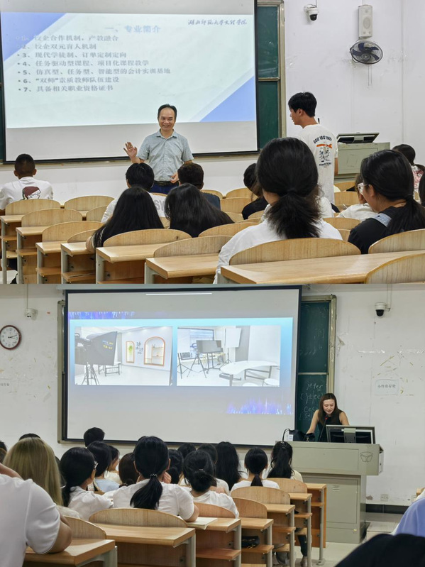 宣讲会上,教师万里飞罗尹何川徐梦婷围绕“为谁培养人”“培养什么人”“怎样培养人”这一主旨,用通俗易懂而又幽默风趣的语言分别从专业概况、专业定位、专业特色、培养目标、课程体系、专业发展前景、未来就业形势以及学生活动等全面系统介绍自己所教授的专业。通过PPT展示视频介绍,结合案例分析,分享自身经验,对相关专业进行拓展延伸,并从毕业条件、学科难度、升学规划等方面为现场同学们答疑解惑。最后激励大家要注重专业知识积累,时刻保持学习的心态,希望新生们能在专业学习中提升专业技能、拓展专业知识、主动参与专业实践,有计划有安排有秩序地度过美好的大学生活。