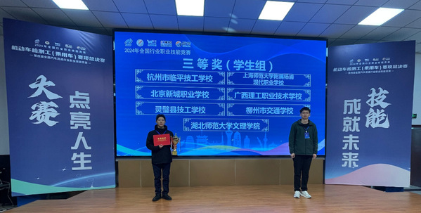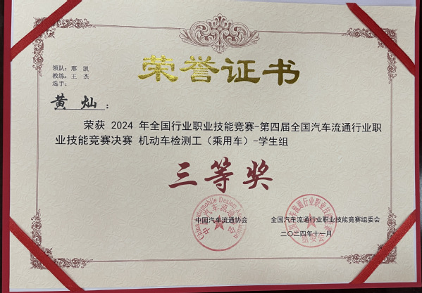 本网讯(通讯员 谭姣)12月1日上午,2024年全国行业职业技能竞赛——第四届全国汽车流通行业职业技能竞赛机动车检测工(乘用车)赛项总决赛在许昌科技学校圆满落幕。易游 (中国版权)官方网站新能源汽车产业学院新能源汽车技术专业2204班黄灿同学荣获学生组国赛三等奖。