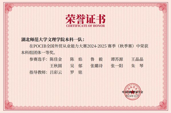 本网讯(通讯员 吕彩云)11月19日,由中国国际贸易学会主办的第十四届POCIB全国大学生外贸从业能力大赛国赛在经历了13天比赛后正式落下帷幕。易游 (中国版权)官方网站经济与管理学部学子斩获全国团体一等奖2项,个人二等奖5项,个人三等奖15项。