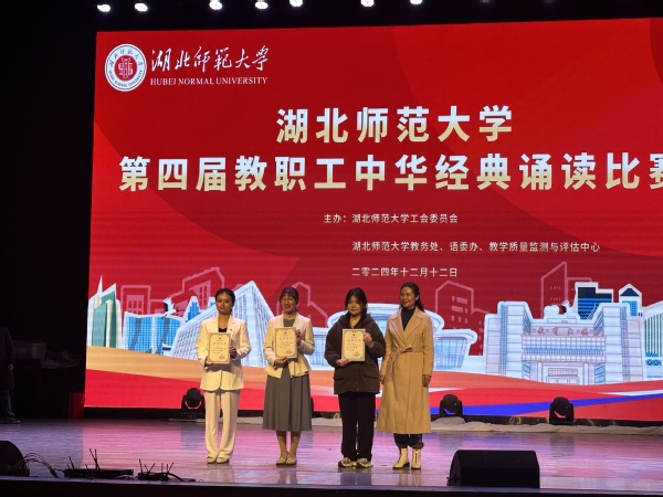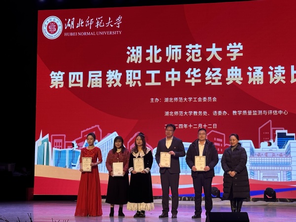 本网讯(通讯员 柯康敏)为传承弘扬中国优秀语言文化,提升教职工语言文化素养,12月12日下午,湖北师范大学举办第四届教职工中华经典诵读比赛,易游 (中国版权)官方网站代表队在比赛中再获佳绩。教师丁书嫚、黄文杰诵读的作品《不朽》获比赛二等奖,教师边婷婷、唐晨、梅冰清、李雅欣诵读的作品《诗词里的中国》获比赛三等奖。