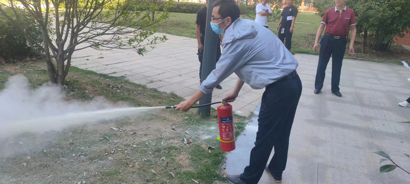培训中,保安队长王金华为大家详细讲解灭火器的种类、适用方法与注意事项,以及消防栓如何开启,水带与枪头的正确连接方式等,并现场演示如何正确使用灭火器和水带。讲解完后,教职工们也纷纷拿起灭火器和水带进行实际操作。
