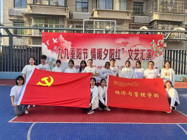 1023日,是中国传统节日重阳节暨全国第十一个老年节为了更好地继承和发扬孝亲敬老的传统美德,培育新时代青年服务社会、助人为乐的优良品质经管学部团总支、学生会携手学生党支部赴黄石市西塞山区滨湖社区参加“九九重阳节,情暖夕阳红”文艺演出活动