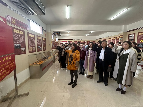 随后,全体党员面对党旗重温入党誓词,铿锵有力的声音和神圣的誓词在耳畔回荡,提醒着每一位同志认真思考作为新时代共产党员的责任和担当