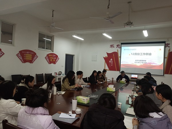1130日下午2点半,经济与管理学部于2号实验楼213会议室召开12月份工作例会,部署近期重点工作。会议由党总支副书记罗铭主持,学部全体教职工参加