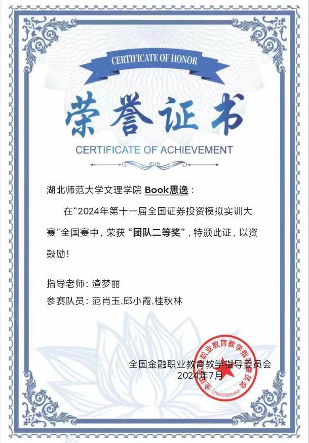 由全国金融职业教育教学指导委员会组织的2024年第十一届全国证券投资模拟实训大赛在7月顺利结束。此次大赛是以证券业为背景,基于证券从业者所应具备的行业知识、基本业务技能及实操技能等设计的综合实训大赛。
