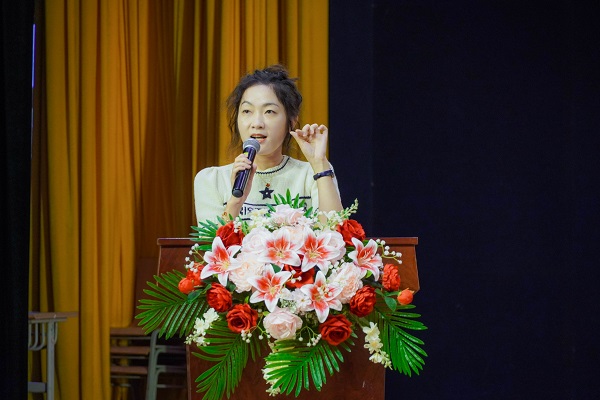 优秀青年教师代表陈媛老师发言,她勉励新生们加强自身修养,提升综合素质,尽快适应大学生活,树立正确的人生目标,合理规划大学生涯,珍惜时光,勤奋学习,勇于探索,全面发展,顺利完成从高中生到大学生的角色转变。