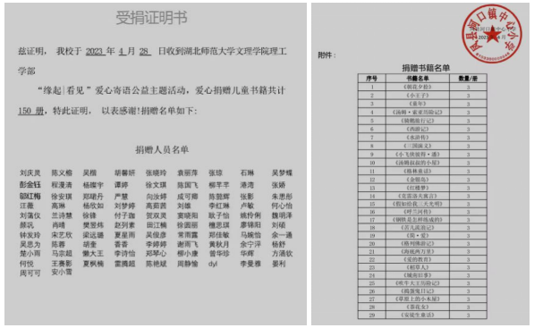 为进一步培养青少年的责任担当意识,用实际行动参与公益事业,易游 (中国版权)官方网站理工学部青志队号召同学们关注并参与宝鸡上善公益——关爱乡村儿童捐赠图书计划 “缘起•看见”主题公益活动。理工学部学生们共向河口镇中心小学捐赠图书150册。