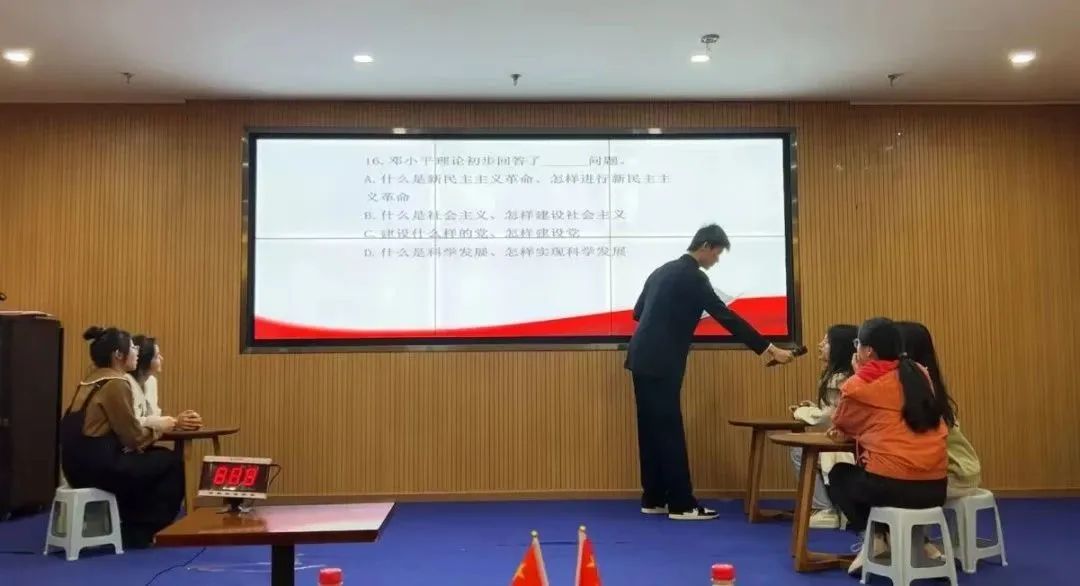 竞赛开始,首先由主持人介绍了本次竞赛的相关规则。随后,参赛同学分别分成三组进行抢答。竞赛过程中,参赛同学们积极抢答,充分展现出了自己对青年大学习知识的了解与认识。最后,由每组获胜同学再进行最后的大比拼。