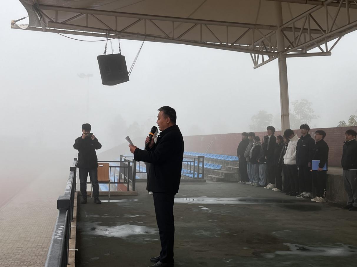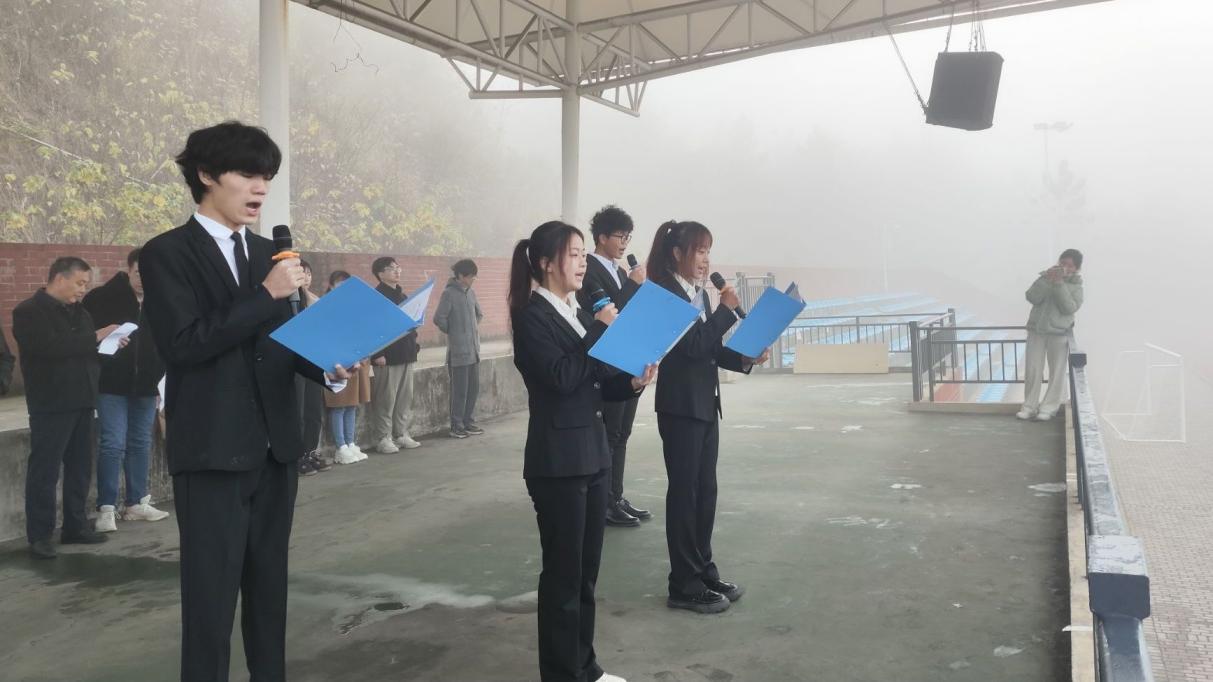 20231127日,理工学部举行升旗仪式暨“寸心寄华夏,岁月赠山河”主题爱国主义教育活动。伴随着高亢、激昂的《义勇军进行曲》,擎旗手奋力挥动右臂,五星红旗冉冉升起,全体师生队列整齐、肃穆地行注目礼。