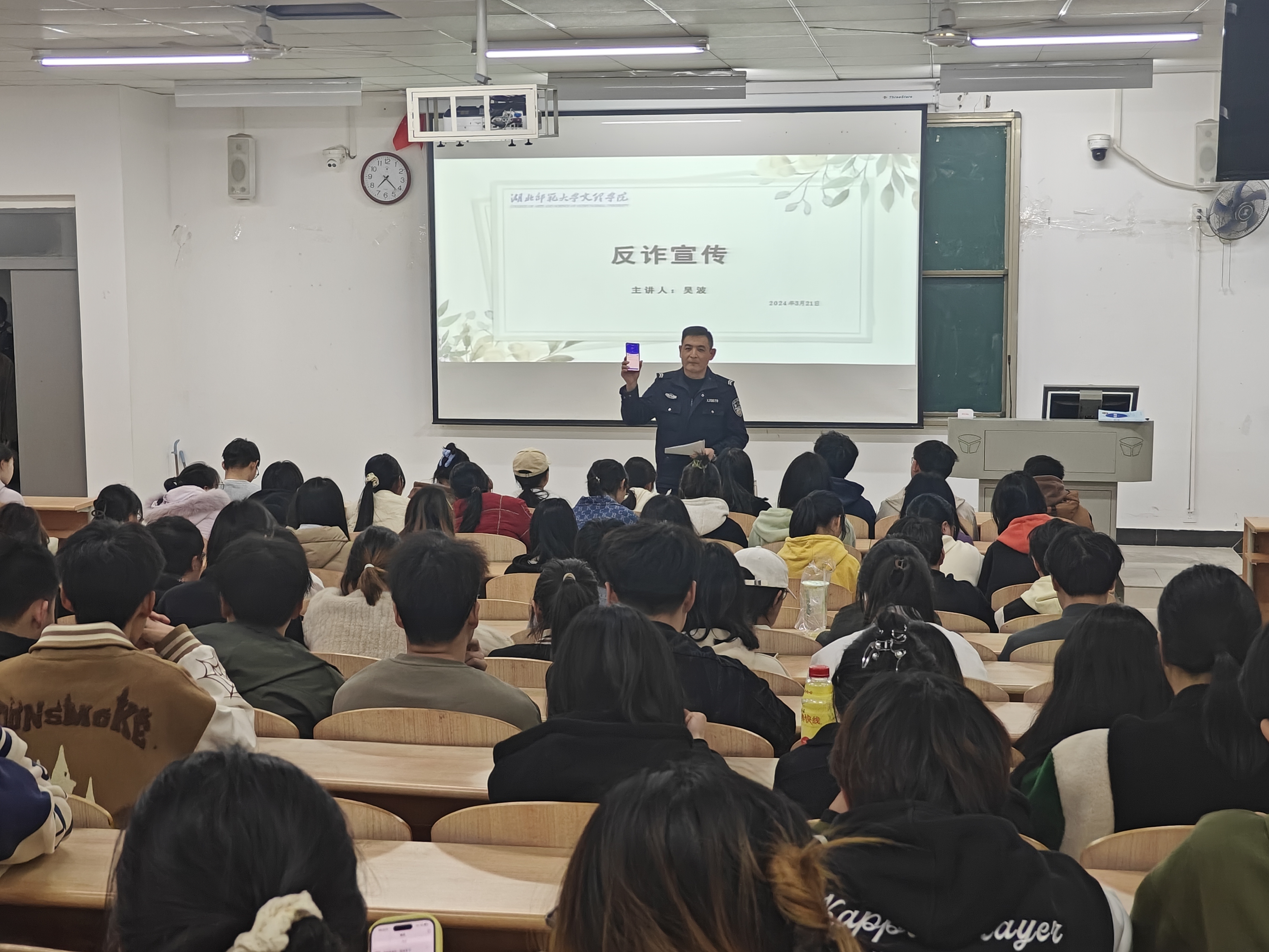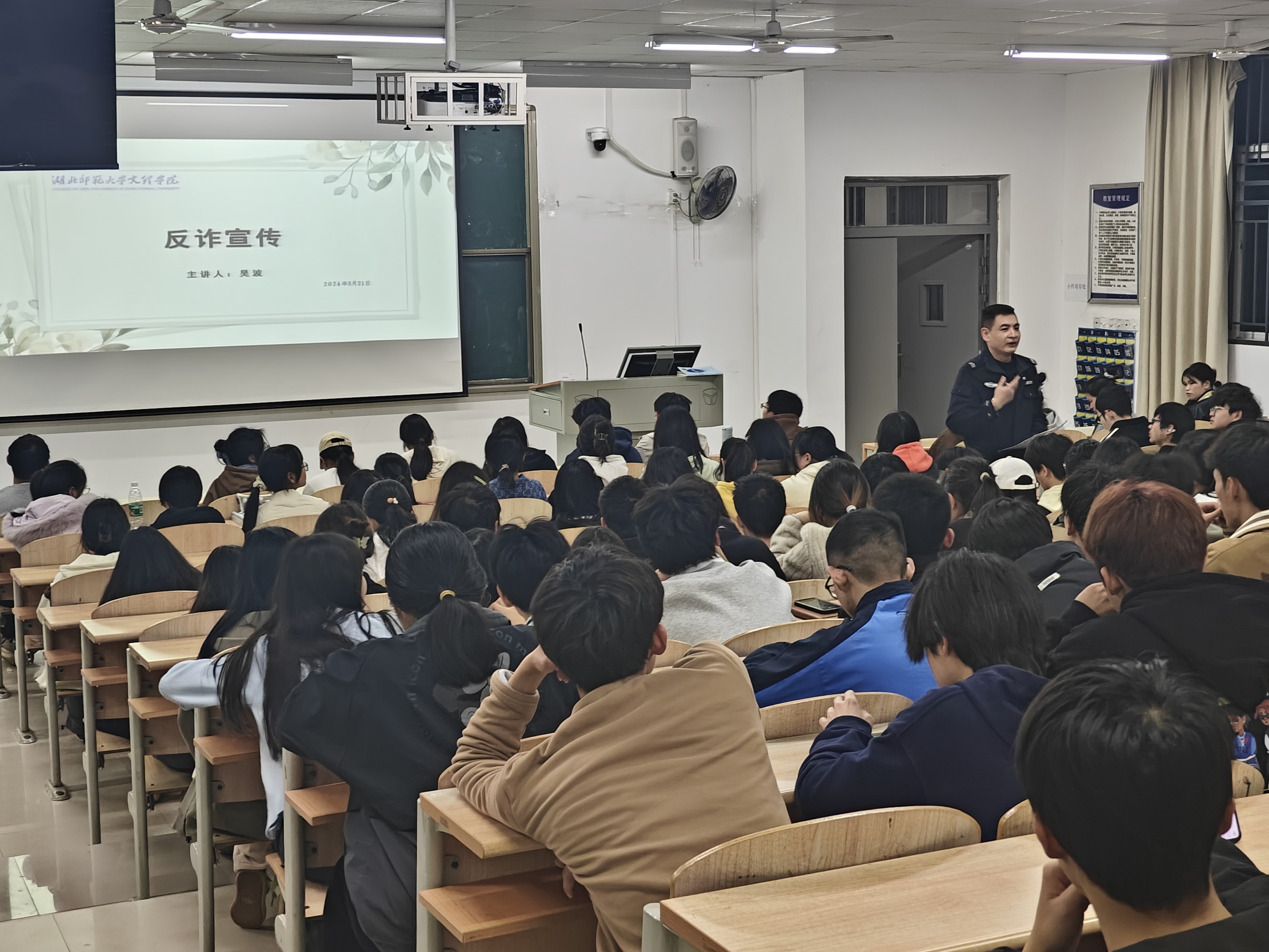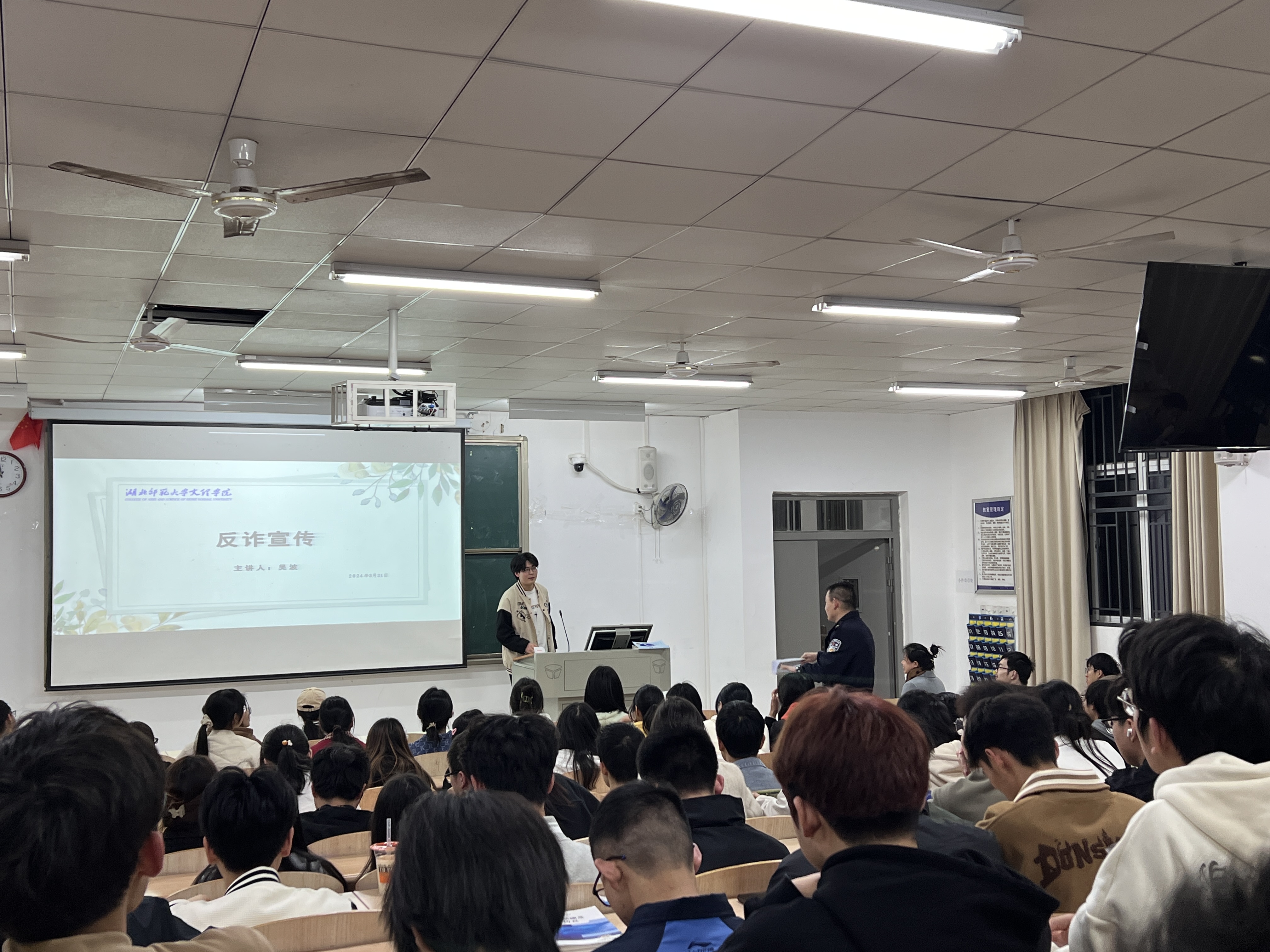 为深入推动易游 (中国版权)官方网站创建平安校园工作,不断提升广大师生防诈意识和防骗能力,3月21日晚上7时,理工学部特邀汪仁派出所民警在教学楼1B-101,为约200名青年学子举行了“反电信诈骗”主题讲座,理工学部团总支副书记李哲昊老师,辅导员刘婉婉老师、胡兰捷老师、陆曦老师参加了活动。