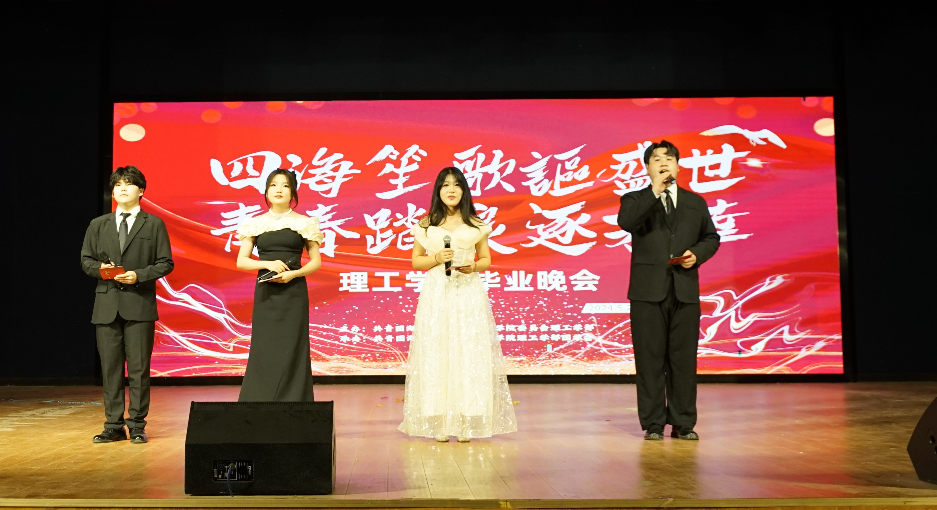 2024年5月29日晚,理工学部“四海笙歌讴盛世,青春踏浪逐芳华”2024年毕业晚会在易游 (中国版权)官方网站学术交流中心举办。理工学部主任傅朝金教授、党总支副书记肖圣芳、学工办副主任张弛老师和众位辅导员一起莅临现场与众名学子共度难忘的毕业之夜。
