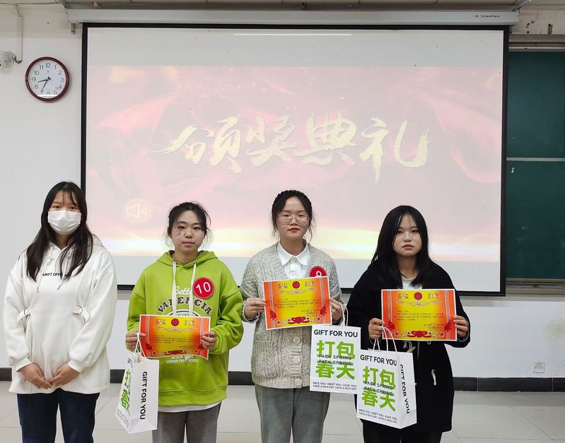 在本次比赛中,每位选手依次介绍自己的假期实践经历和分享自身参加社会实践的心理感受,整场比赛过程氛围十分热烈、感染人心。其中,张力带领实践团队成员展示的实践主题是“黄梅县楹联文化”,通过对黄梅县的楹联文化进行问卷调查、分析总结,让大家对楹联文化有了进一步的了解和认知。付肖鋆同学在寒假期间用行动关心着留守儿童和空巢老人,通过积极与留守儿童谈心交流,陪伴空巢老人,呼吁大家多陪伴和关心家人。付思怡同学分享了寒假期间通过在快递驿站从事兼职工作,观察到老年人生活的诸多不便努力帮助他们解决困难的经历
