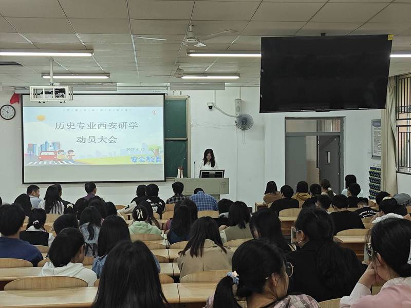 历史研学活动旨在通过实地考察和实践等方式,帮助学生们在教室之外的真实环境中深入了解和掌握历史知识,培养他们对历史学习的兴趣和能力。为确保活动顺利进行,人文学部精心组织、用心部署。在4月15日上午10时,历史学专业西安研学动员大会在1B101教室举行。会上向学生们提供了有关西安天气变化和安全注意事项的重要提醒,并强调了研学活动的重要性,详细说明了研学成果考核的形式和要求。