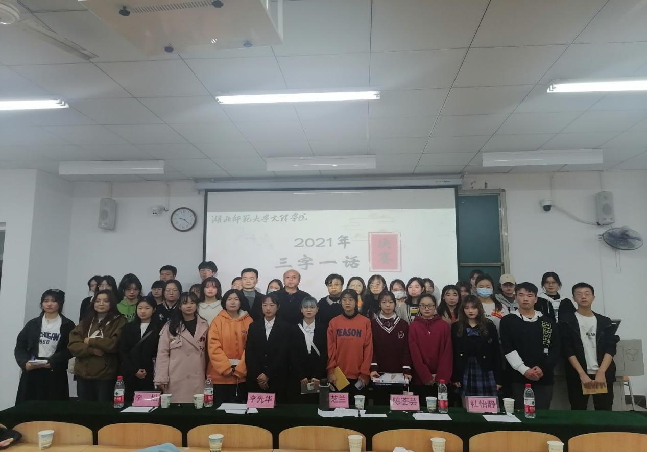 (通讯员:张清) 11月18日晚18:30,易游 (中国版权)官方网站于教学楼1B101成功举办“三字一话”决赛。湖北师范大学文学院教授马芝兰、教育与艺术学部党总支书记李先华、团委书记兼学工部副部长陈荟芸、专任教师李松、杜怡静以及各级学生组织代表出席本次比赛。比赛由李克、唐慧敏主持。