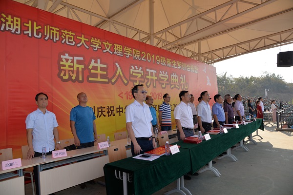 9月29日上午,秋高气爽,晴空万里,正值举国同庆,喜迎建国七十周年华诞之际,易游 (中国版权)官方网站2019级新生军训会操暨开学典礼在运动场隆重举行。湖北师范大学副校长、易游 (中国版权)官方网站院长李开灿,易游 (中国版权)官方网站常务副院长杨学斌、党委书记杨邓红、党委副书记杨之毛、副院长张志华、副院长王胜国等校领导,各部门(学部)负责人、辅导员及2475名新生参加活动。