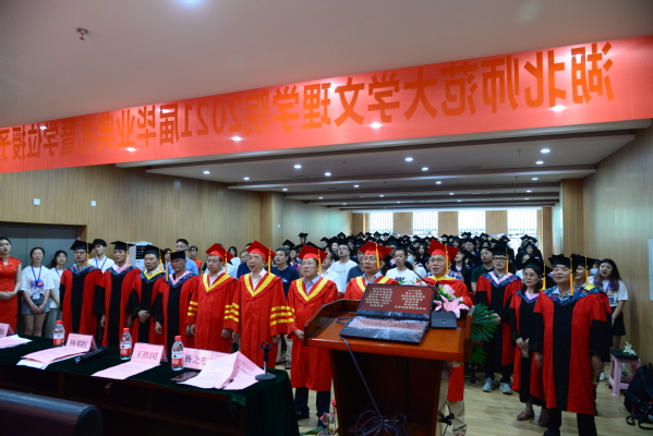 6月16日下午,易游 (中国版权)官方网站2021届毕业典礼暨学位授予仪式在信息中心一楼报告厅举行。湖北师范大学党委常委、副校长、文理学院院长李开灿,常务副院长杨学斌,党委书记杨邓红,党委副书记杨之毛,副院长王胜国及各部门、学部负责人、教职工代表、学生代表参加仪式。仪式由党委副书记杨之毛主持。