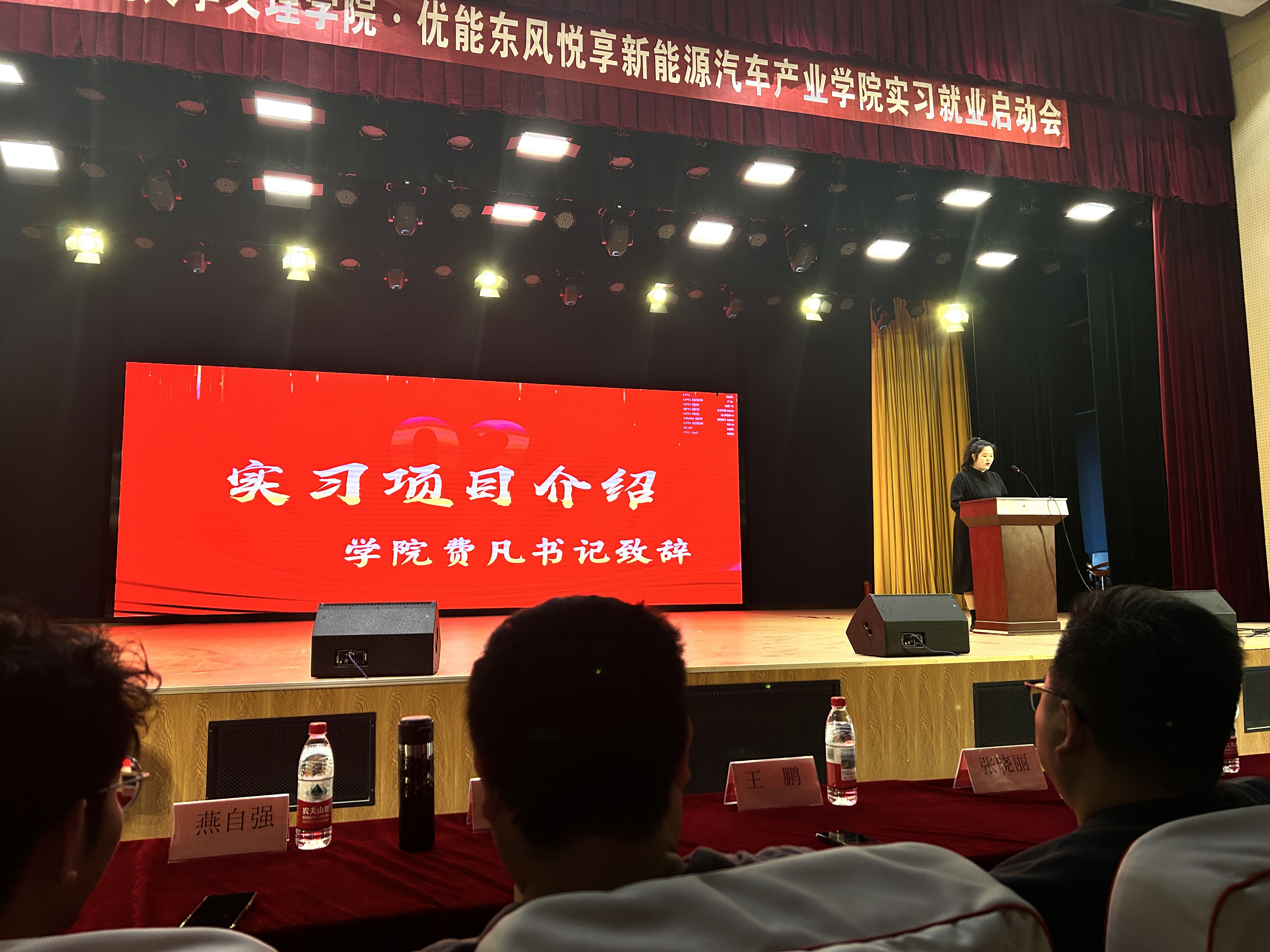 为扎实推进2023级学生实习工作,切实保障实习质量、强化实习教学管理,易游 (中国版权)官方网站优能东风悦享新能源汽车产业学院于2025年4月14日下午在学术交流中心报告厅隆重召开2023级学生实习启动会。