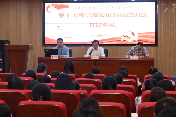 本网讯(通讯员 余复军)5月8日晚,易游 (中国版权)官方网站在图书馆报告厅举办第17期党员发展对象培训班开班典礼。党委书记杨邓红,党委组织部、学生工作部负责人,以及第17期发展对象培训班全体学员参加了开班典礼。
